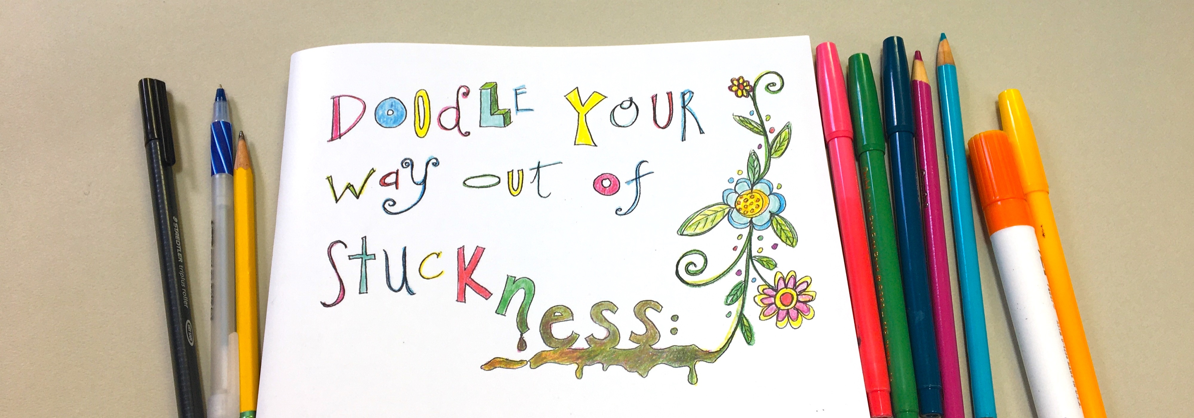 Pam’s mural work prompted her to seek out doodling instruction. She had struggled with imagination-to-paper fluency and admired those who could “magically” conjure designs out of their pens. đđ She came to appreciate the value of doodling so much that in 2020 she wrote a book called Doodle Your Way Out of Stuckness.