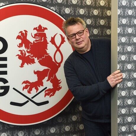 DEG-Pressesprecher Frieder Feldmann blickt in seinem Vortrag auf Guerilla-Aktionen zurück, mit denen er die Düsseldorfer EG überregional in die Medien bringen konnte. Dazu zählt „DEG im Weltall“, der Logo-Überfall auf den Kölner Mannschaftsbus mit Campino, der „Fluch des zahnlosen Hais“, das mutige Schmücken von Düsseldorfer Denkmälern mit DEG-Schals und vieles mehr.