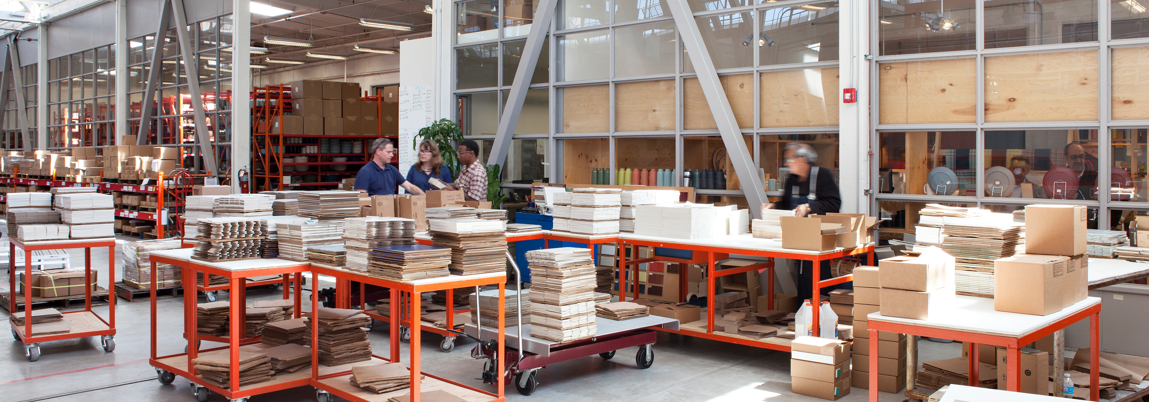 In the heart of San Francisco’s Northeast Mission neighborhood, and at the center of a creative campus that houses our Heath retail showroom, Blue Bottle Coffee kiosk and viewing court area, is our tile factory. Enjoy a complimentary Blue Bottle Coffee before you can get a sneak peek of the workings from various points in the building as well as an insiders look at how designs for Heath Ceramics come to life.