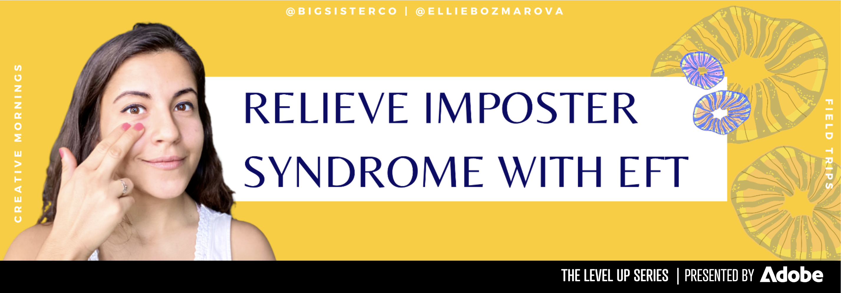 • First, we’ll start by talking about EFT Tapping—a simple somatic technique to relieve stress—and do a practice session around imposter syndrome to show you how it works. You’ll be able to feel the difference.