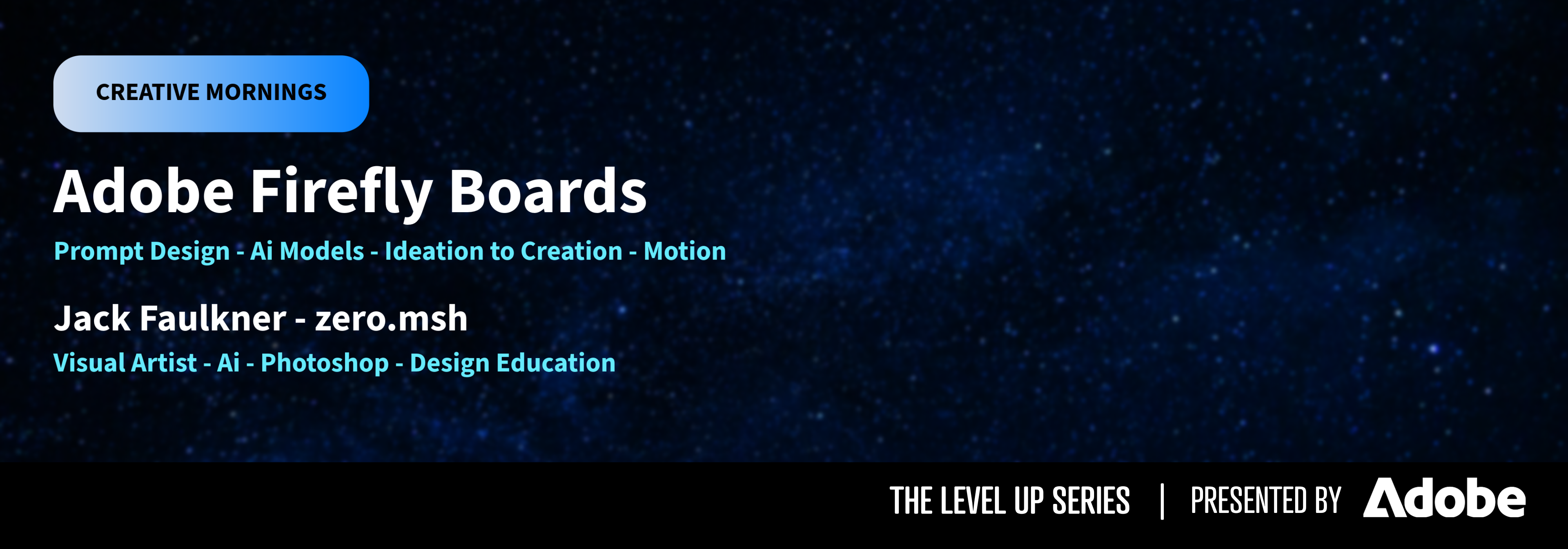 Join Jack Faulkner, a visual artist and content creator specialising in AI, Photoshop, and design education, for a Creative Mornings session all about turning imagination into reality.