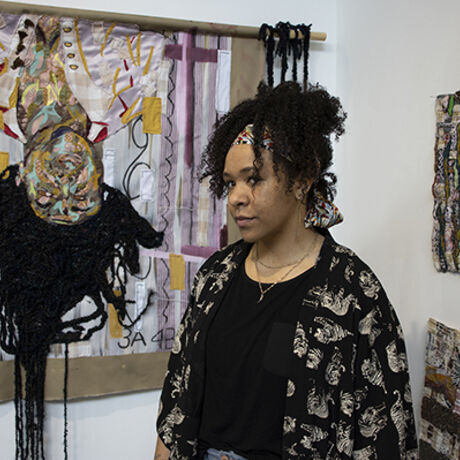 Josie Love Roebuck is an interdisciplinary artist from Rising Fawn, Georgia. She is currently a Visiting Teaching Professor at Northern Kentucky University. Roebuck is a storyteller- a weaver of perspectives and identity. Her work delves into the depths of human pain, while simultaneously highlighting the healing journey that follows. Through the act of sewing, her canvas morphs into paper and her needle to a pen, and the stories—her own and those shared with Roebuck—are brought to life.
