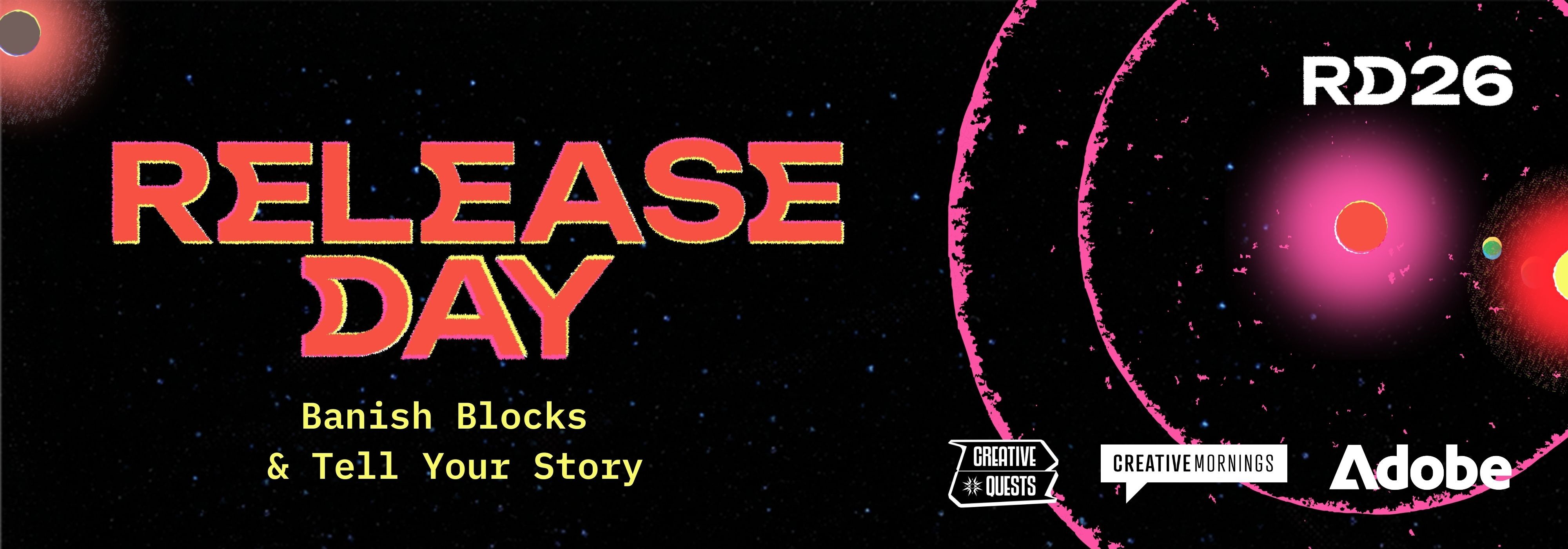 We want you to join people around the world releasing their creative projects on our collective deadline of May 29th. CreativeMornings, Creative Quests, and Adobe have teamed up to bring you this month-long series of support to help you bring your project to life. Learn more and sign up at creativemornings.com/releaseday.